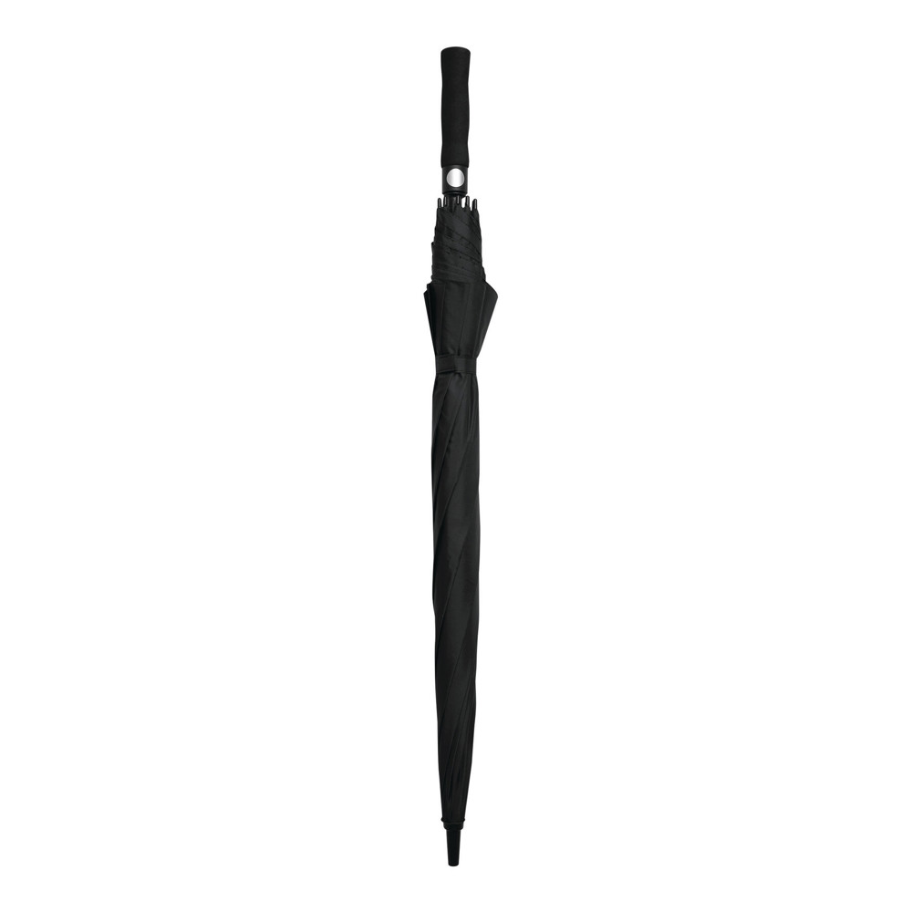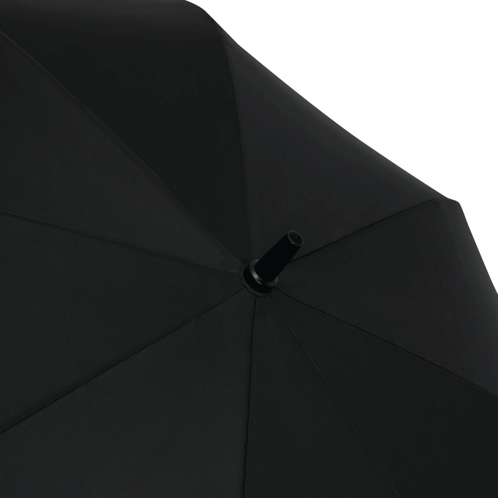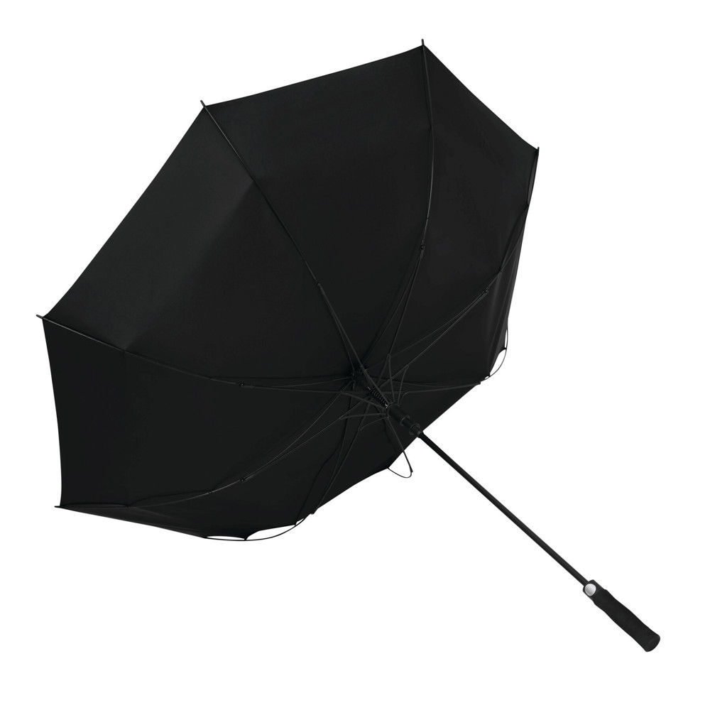 Automatik-Golfschirm ORA: Fiberglasstock, Fiberglasspeichen und Kunststofftips, EVA-Griff mit integrierter Automatik-Auslösetaste, Polyester-Pongee-Bespannung aus recycelten Kunststoffen / RPET, Schließband mit Klettverschluss