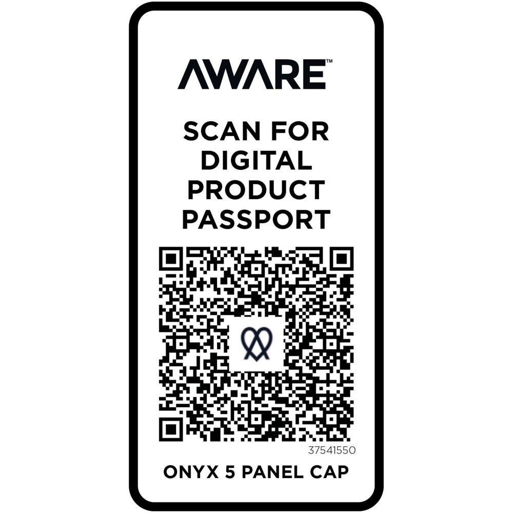 Die Onyx-5-Panel-Kappe ist aus 70 % Recyclingbaumwolle und 30 % recyceltem Polyester hergestellt. Sie ist für eine bequeme Passform mit einem Kopfumfang von 58 cm konzipiert, und lässt sich mit der Metallschnalle leicht und sicher einstellen. Die Kappe besteht aus Cyclo®-Recyclingfasern, bei denen vorsortierte Abfälle verwendet werden, die die Farbe des Garns bestimmen. Diese Fasern verringern nicht nur den Bedarf an neuen Rohstoffen, sondern sind auch Ausdruck des Engagements für eine Kreislaufwirtschaft und verkörpern das Wesen der Abfallvermeidung und der Förderung eines geschlossenen Kreislaufs. Jede Kappe wird außerdem mit einem Aware™ Tracer geliefert. Diese innovative Funktion ermöglicht es den Nutzern, die Herkunft und den Weg ihres Artikels mithilfe eines QR-Codes nachzuvollziehen, wodurch die Transparenz der Lieferkette erhöht und eine stärkere Verbindung zwischen dem Produkt und seinem Herstellungsprozess fördert.