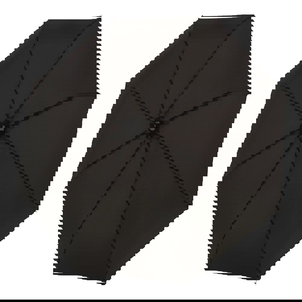 Polyester Pongee, schwarzer Stahlstock, Fiberglas-Teilschienen, mattschwarzer Kunststoffgriff mit integrierter Drucktaste