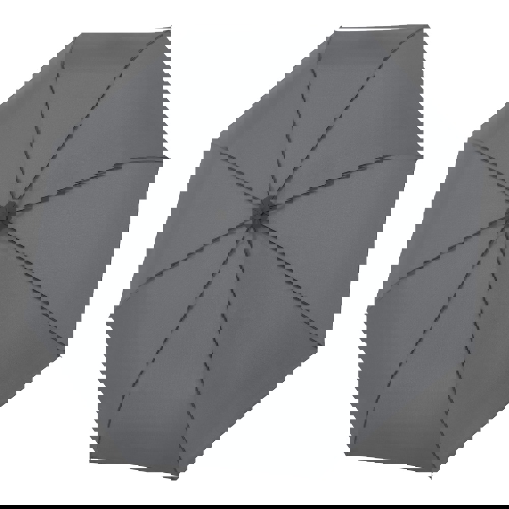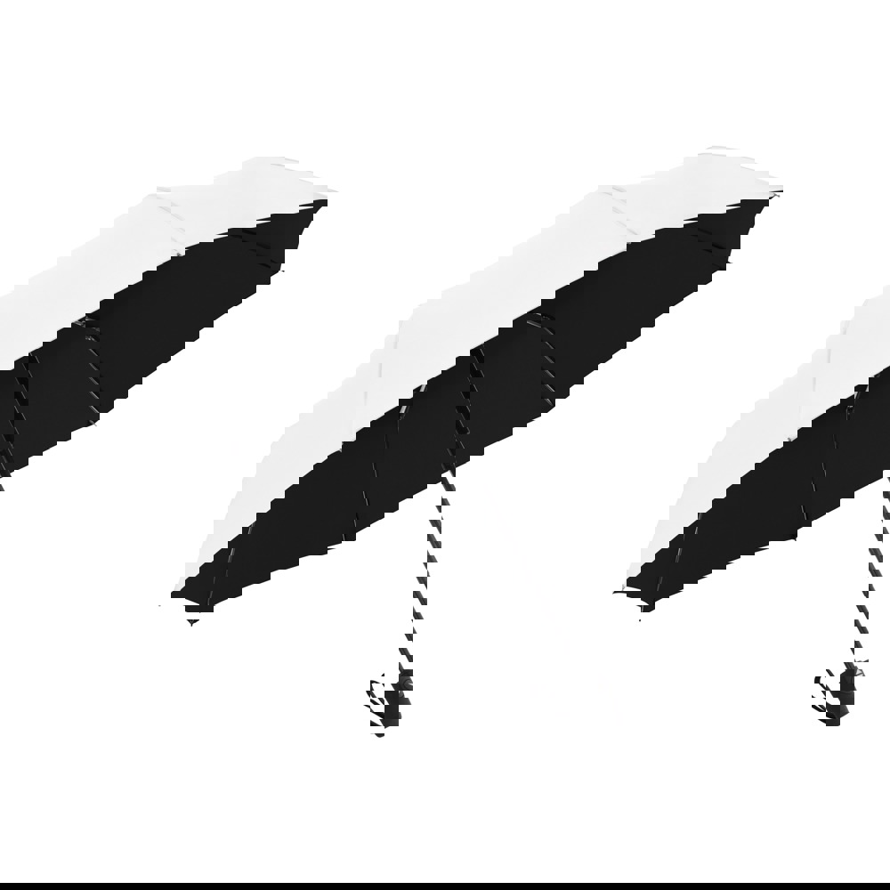 Material: Polyester Pongee, schwarzer Stahlstock, Fiberglas-Teilschienen, mattschwarzer Kunststoffgriff mit integrierter Drucktaste