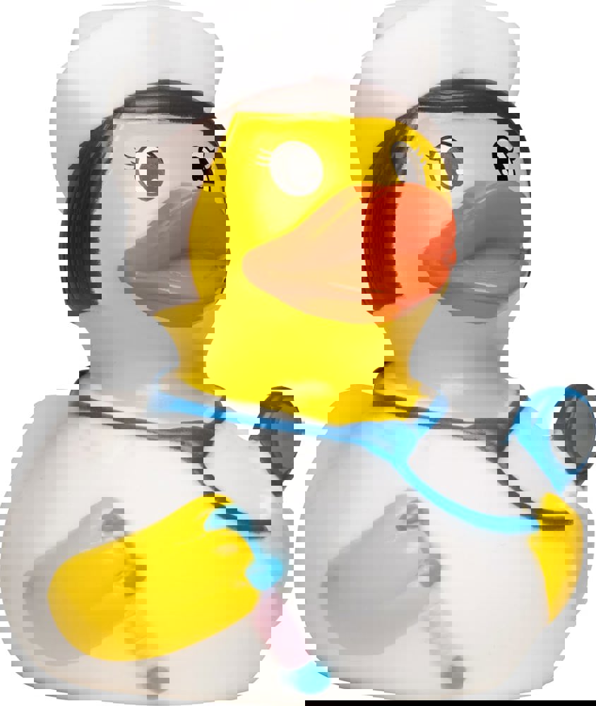 Ihnen geht es nicht gut? Diese Ente sorgt für Ihr Wohlergehen – und was könnte da besser helfen, als ein richtig schön entspanntes Bad? Und wenn das mal nicht reichen sollte, kennt sie auf jeden Fall noch ein paar Heilmittelchen, mit denen sie Sie ganz schnell wieder auf die Beine bringt – und keine Sorge, die Spritze, die sie dabei hat, tut auch nicht mal ein klitzekleines bisschen weh! Die weiße Krankenschwesterkluft mit dem großen, roten Kreuz gehört natürlich auch dazu.
