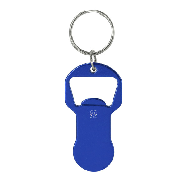 Recycelter Aluminium-Münzöffner-Schlüsselanhänger mit glänzendem Metallfinish. Oben funktioniert... mehr