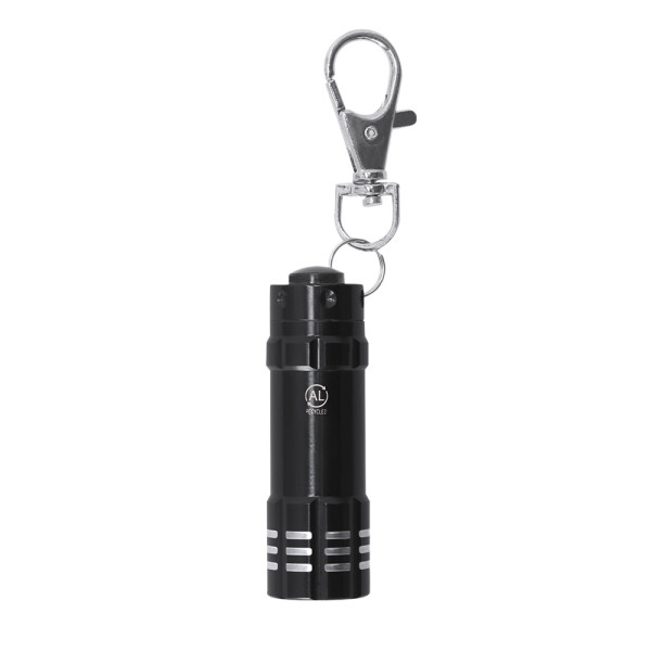 Stabiler Taschenlampenschlüsselanhänger aus recyceltem Aluminium mit glänzender Oberfläche.... mehr