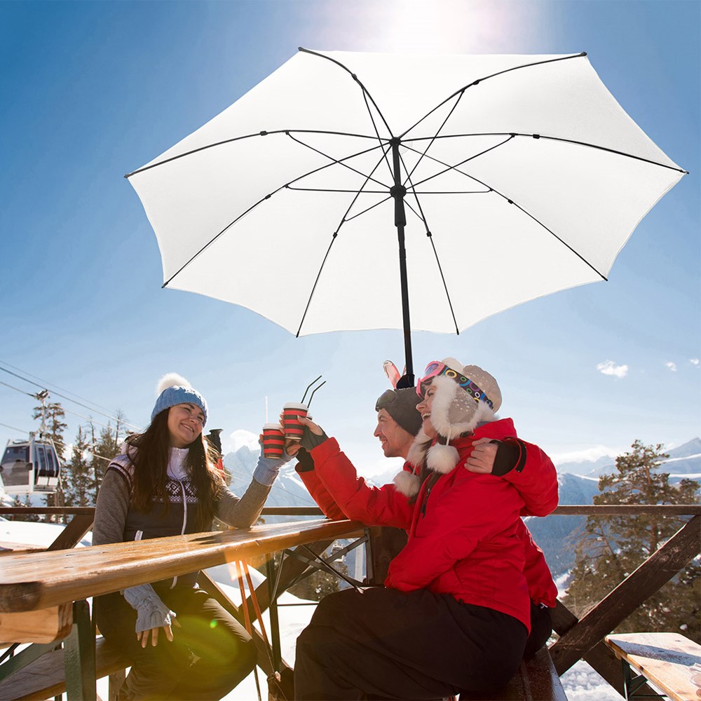 Moderner Sonnenschirm mit Gestell in Titan-Finish und Knickvorrichtung Einfache Handhabung durch Sicherheitsschieber, sehr stabile Fiberglasschienen, zweiteiliger und stufenlos höhenverstellbarer Stock mit Knickvorrichtung zur Neigung des Schirms, Stock in edlem Titan-Finish, Unterstock mit ca. 119 cm Länge und Drehfeststeller zur sicheren Fixierung, komfortables Tragefutteral, hochqualitativer Bezug mit einer Grammatur von ca. 200 g/m² und Lichtschutzfaktor UPF 50+, exklusive Füllständer (Art. 8920 oder Art. 8905) / Erdspieß (Art. 8939)