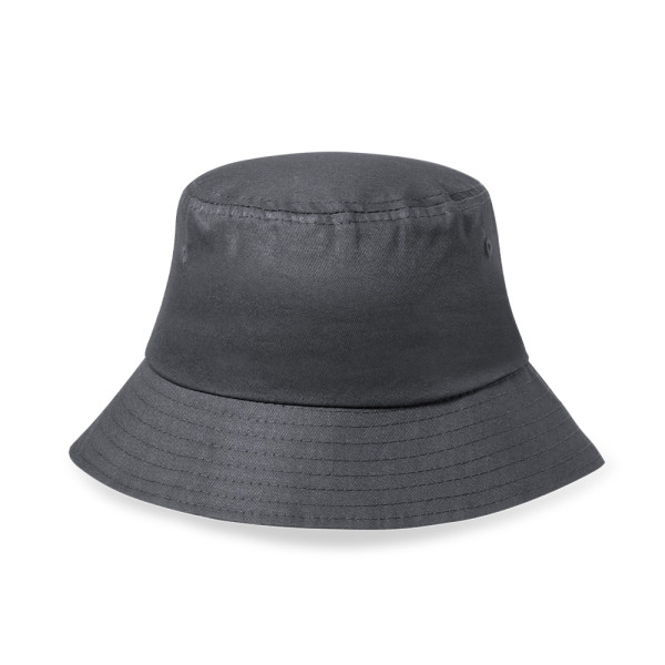 Bobhut aus strapazierfähiger recycelter Baumwolle. Mit gestickten Belüftungslöchern und in verschiedenen Farben erhältlich. Logo aus recycelter Baumwolle auf dem Außenetikett. GRS-Zertifizierung (Global Recycled Standard), die die recycelte Herkunft des zur Herstellung des Produkts verwendeten Materials garantiert.
