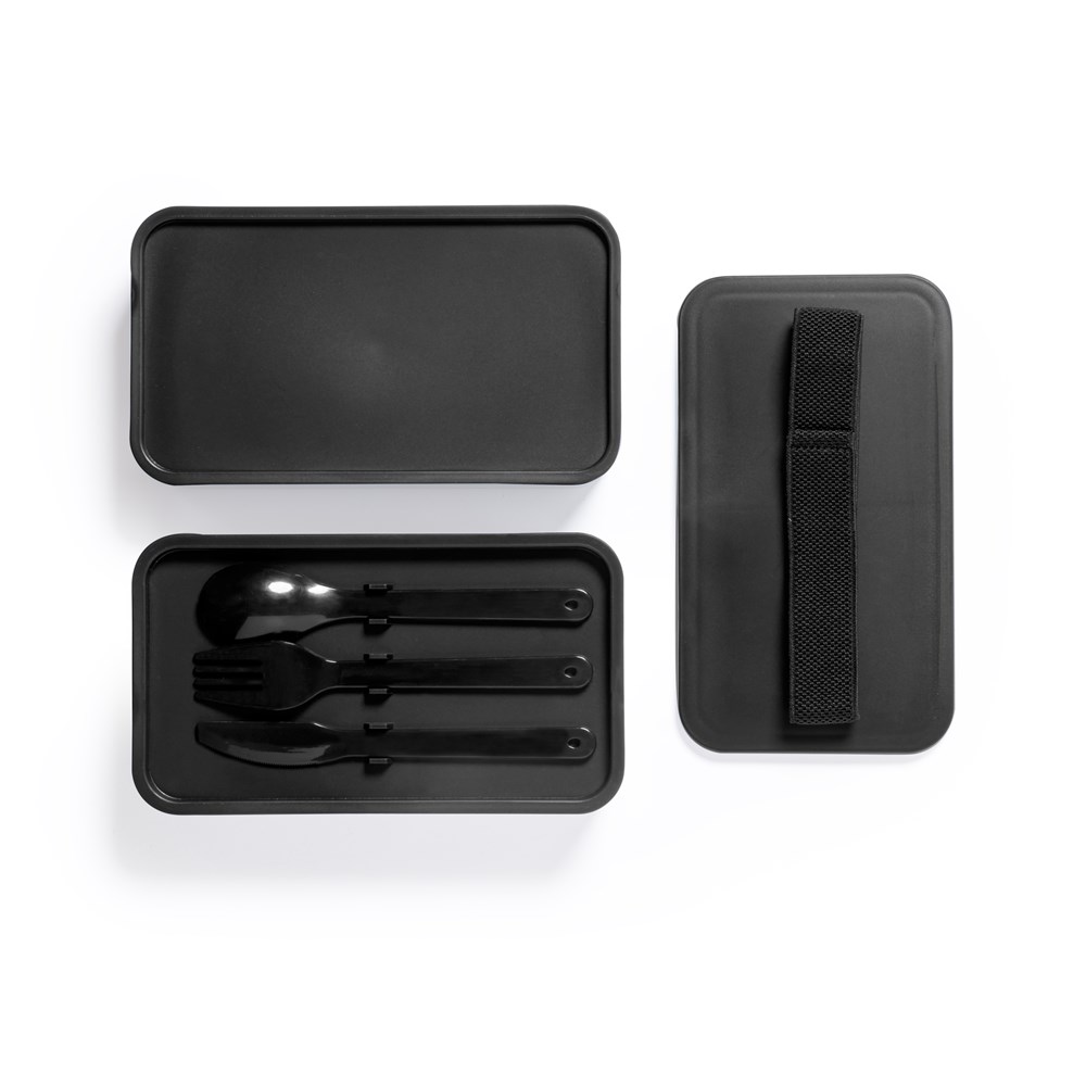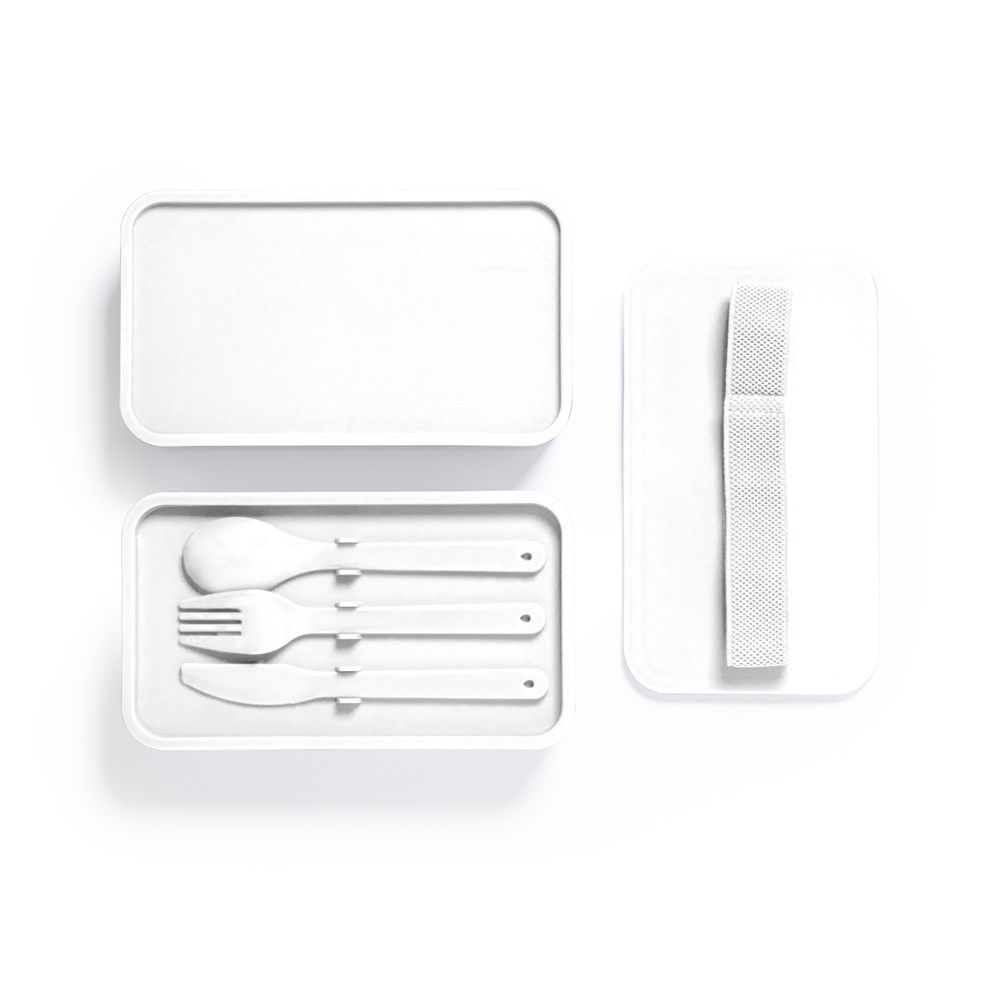 Lunchbox mit 1,4 Liter Fassungsvermögen, hergestellt aus BPA-freiem PP. Zwei Fächer mit einem Fassungsvermögen von je 700 ml. Innenfächer mit Gabel, Löffel, Messer und Unterteilungen. Erhältlich in einer Vielzahl von Farben, mit passendem elastischem Sicherheitsband. Food Grade-Zertifizierung, die die Sicherheit garantiert, wenn Lebensmittel mit dem für die Herstellung des Produkts verwendeten Material in Berührung kommen.