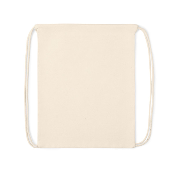 Linie Natur Rucksack mit Kordelzug aus Baumwolle 180g/m2 in natürlicher Ausführung. Hauptfach mit Kordelzügen aus Baumwolle.