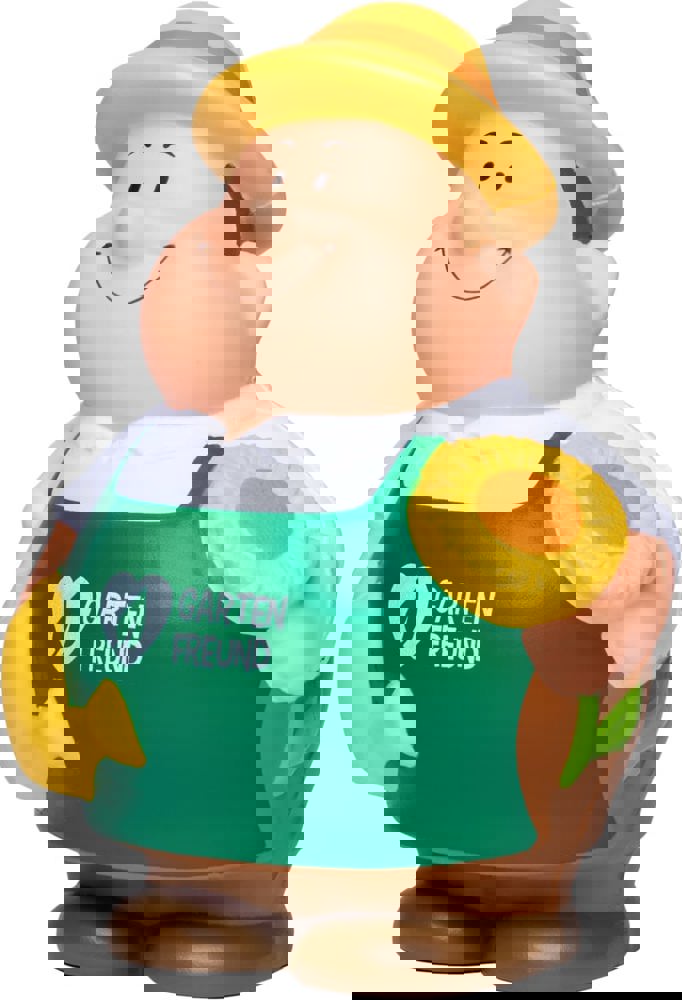 Unsere originellen Produkte können mehr, als nur Werbebotschaften übermitteln: Durch ihre hohen Sympathiewerte eignen sie sich beispielsweise hervorragend als neues Accessoire in Ihrem Sortiment. Sie passen außerdem perfekt in ein Geschenkset. Dieser „Gartenfreund“ eignet sich für alle, die einen grünen Daumen haben oder gerne hätten. Die Zahl der Hobbygärtner wächst. Stechen Sie aus der Masse heraus und bieten Sie angesagte Produkte an, die man nicht nur gerne verschenkt, sondern auch gerne bekommt und die einen in den heimischen Garten begleiten. Ergänzende Informationen - Achtung: Kein Spielzeug! Von Kindern unter 3 Jahren fernhalten. Kann ablösbare Kleinteile enthalten.