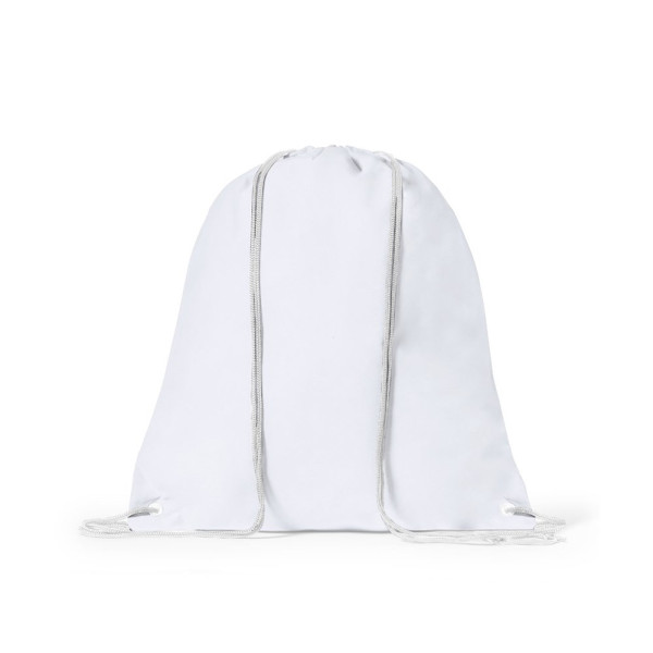 Rucksack mit Kordelzug aus Non-Woven Material. Hergestellt aus weichem Vliesstoff in distinguierten und originellen Farben mit schwarzen Kordeln. Die Ecken sind mit Metallringen für zusätzliche Sicherheit verstärkt.