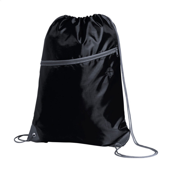 Turnbeutel mit Reißverschluss-Seitentasche und Kopfhörer-Kabelausgang. Material: 210D Polyester.