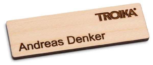 Holz-Namensschilder sind ideal, um einen „natürlichen“ Eindruck zu machen und einzigartig im Auftritt durch die individuelle Maserung des Naturmaterials. Das Namensschild Lignum | Comfort im dezenten Format 60x20 mm wird individuell mit Logo und Namen lasergraviert. Material: Kirsche, weitere Holzarten (Ahorn, Bambus, Birke, Walnuss) sind erhältlich. Das Holz-Namensschild ist mit einer kleiderschonenden Magnet-Befestigung ausgestattet und sofort einsatzbereit. Format- und Befestigungsalternativen sind verfügbar.