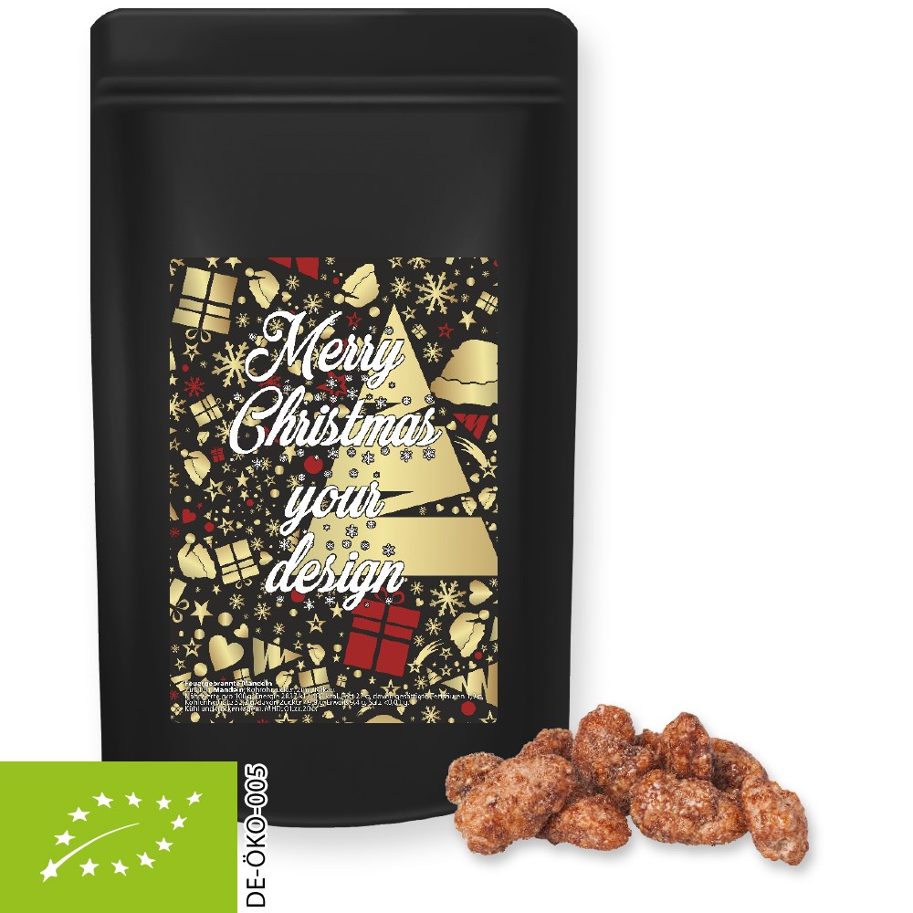 Bio Feuergebrannte Mandeln, ca. 80g, Standbeutel Midi schwarz