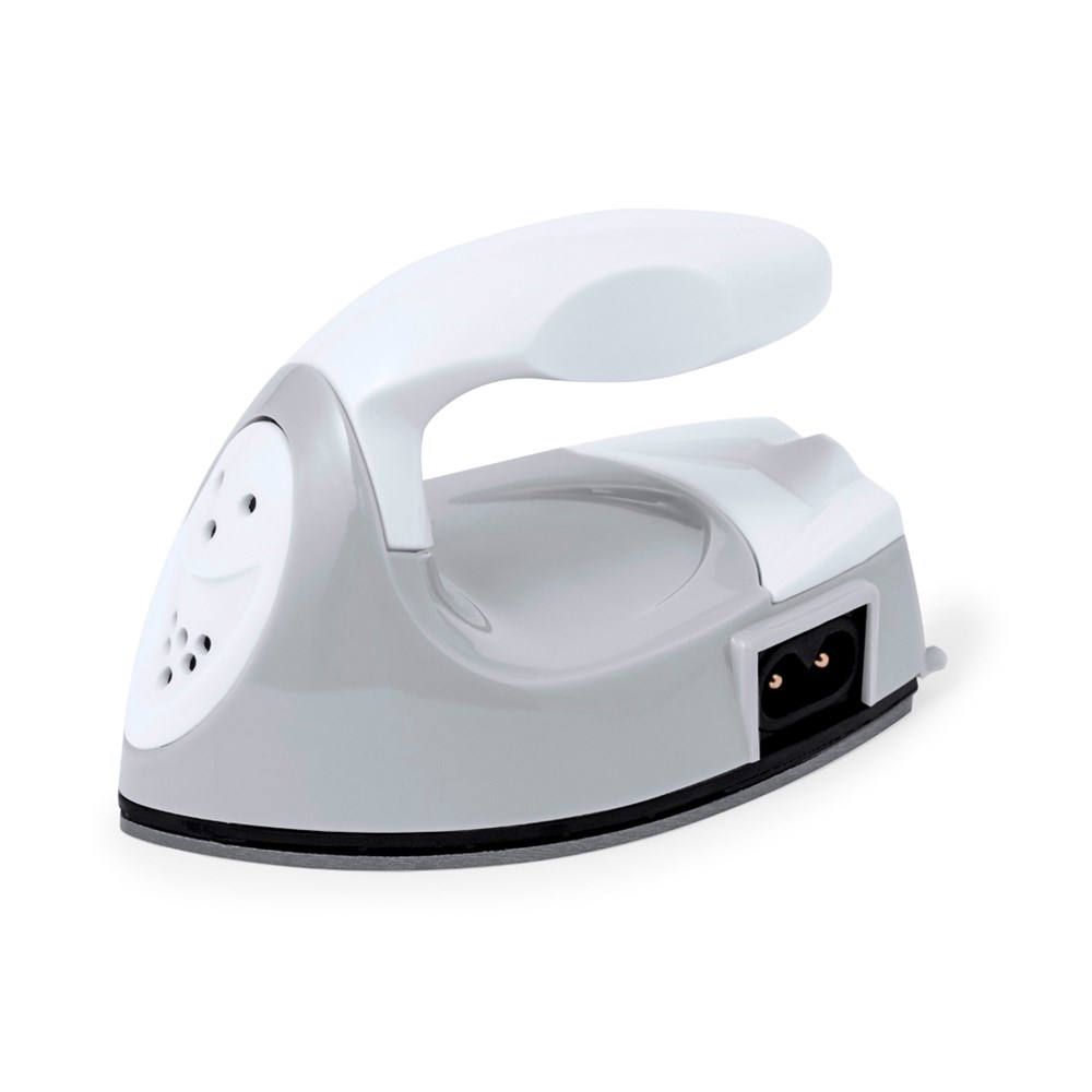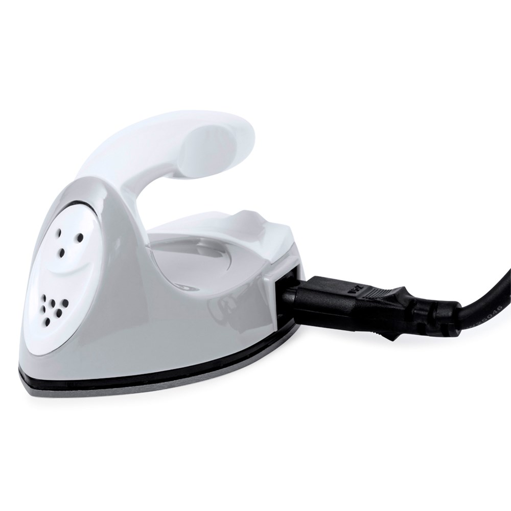 Fantastisches Reisebügeleisen zum Entfernen von Falten durch trockene Hitze. Ergonomisch gestaltet, leicht und einfach zu transportieren, mit EU-Stecker. Präsentiert in einer Kraftpapier-Designbox mit Anweisungen in Englisch und Spanisch.