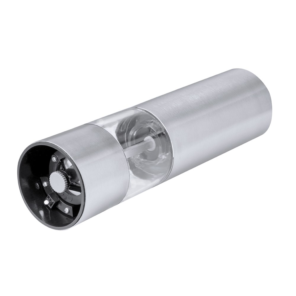 Elektrische Salz- und Pfeffermühle aus Edelstahl. Ideal zum Hinzufügen der gewünschten Gewürze in das 70-ml-Fach, zum Würzen durch Drücken der oberen Taste und zum Anpassen der Korngröße. Mit einem Fenster zur Anzeige der verbleibenden Gewürzmenge und LED-Licht. Wird mit 4 AAA-Batterien betrieben (nicht im Lieferumfang enthalten) und wird in einer Box im Kraftdesign geliefert.
