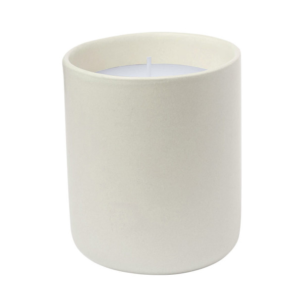 Vanille-Duftkerze in einem Keramikglas. Präsentiert in einem eleganten Farbglas mit verschiedenen Naturtönen. Präsentiert in einer individuellen Kraft-Designbox.