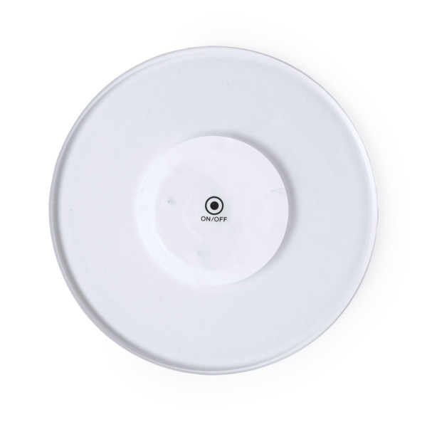 Origineller Untersetzer mit 6 LEDs zur Beleuchtung von Getränken. Mit Knopf an der Basis und 3 Beleuchtungspositionen (festes Licht und schnelles oder langsames Blinklicht). Es wird mit selbstklebendem Klebeband am Boden eines beliebigen Getränks befestigt und wird von zwei Knopfzellen (im Lieferumfang enthalten) betrieben.