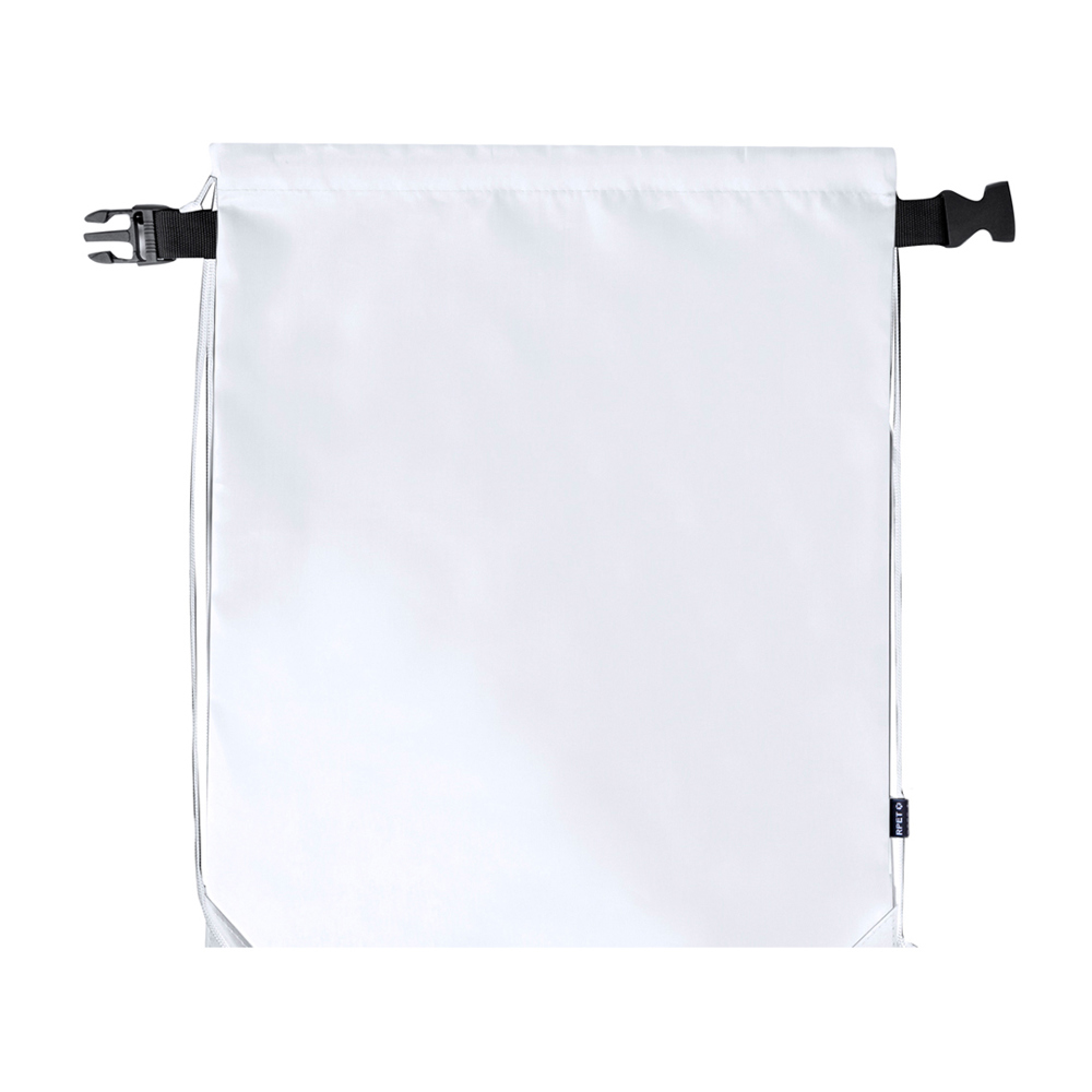 Rucksack mit Kordelzug aus weichem RPET 210T Polyester. Mit Sicherheitsschnallenverschluss und selbstschließenden Schnüren. Verstärkte Ecken, Metallösen und Außenetikett mit RPET-Logo. Erhältlich in einer breiten Farbpalette (die weiße Farbe ist speziell für den Sublimationsdruck geeignet).Das RPET-Material wird aus recyceltem Kunststoff hergestellt, wodurch die Wiederverwendung von Kunststoffabfällen gefördert und ein Beitrag zur Nachhaltigkeit unseres Planeten geleistet wird.