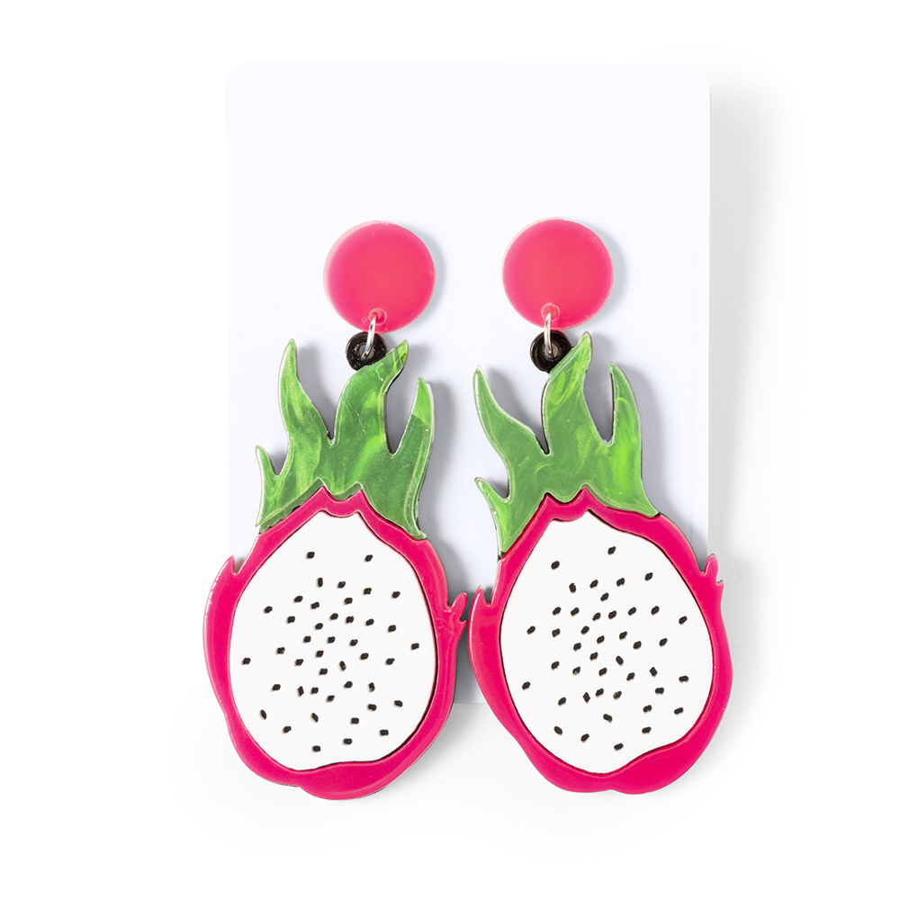 Frische und originelle Kollektion von Obstohrringen. Fesselnd und farbenfroh, geformt wie Erdbeeren, Pitayas, Äpfel, Wassermelonen oder Zitronen, ein Stil-Statement. Mit Liebe zum Detail und Clipverschluss gefertigt. Präsentiert in weißem Karton und in einer individuellen Tasche.