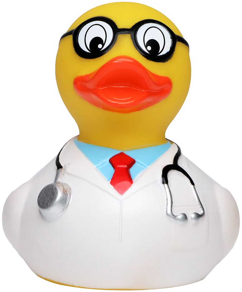 Mit dieser Ente kann es Ihnen gar nicht schlecht gehen, denn bei unserem Professor ist man auf jeden Fall in den richtigen Händen. Selbst für Weißkittelphobiker ist er der richtige Ansprechpartner, denn sein weißer Kittel wird nicht nur durch seine gelbe Farbe, sondern auch noch durch sein blaues Hemd und die rote Krawatte aufgelockert. Die große, schwarze Brille lässt ihn noch schlauer aussehen, als er sowieso schon ist. Lachen ist die beste Medizin und diese Ente bringt jeden zum Lächeln!