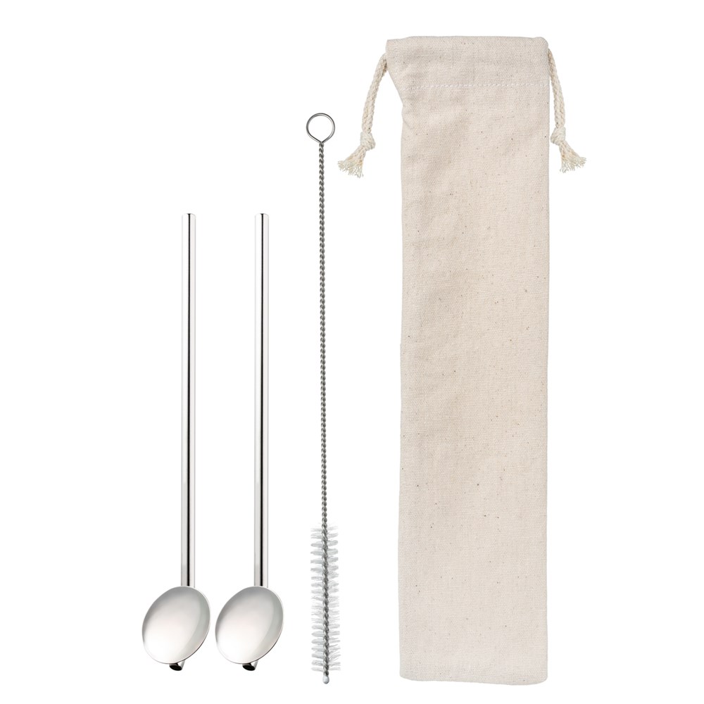 Der Edelstahl Strohhalm inklusive Löffel ist eine ideale Alternative zum Plastikstrohhalm. Er wird mit Stoffbeutel und Reinigungsbürste geliefert. Optimal für Milchshakes, Smoothies oder auch für die Cocktailbar.