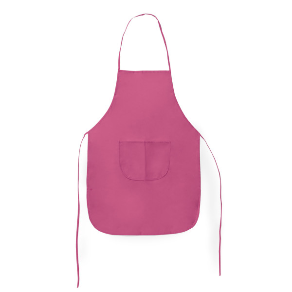 Non-Woven-Schürze aus Faservlies in einer Vielzahl von kräftigen Farben. Mit Fronttasche und Bändern zum Einstellen sowie Schlitz über dem Knie.