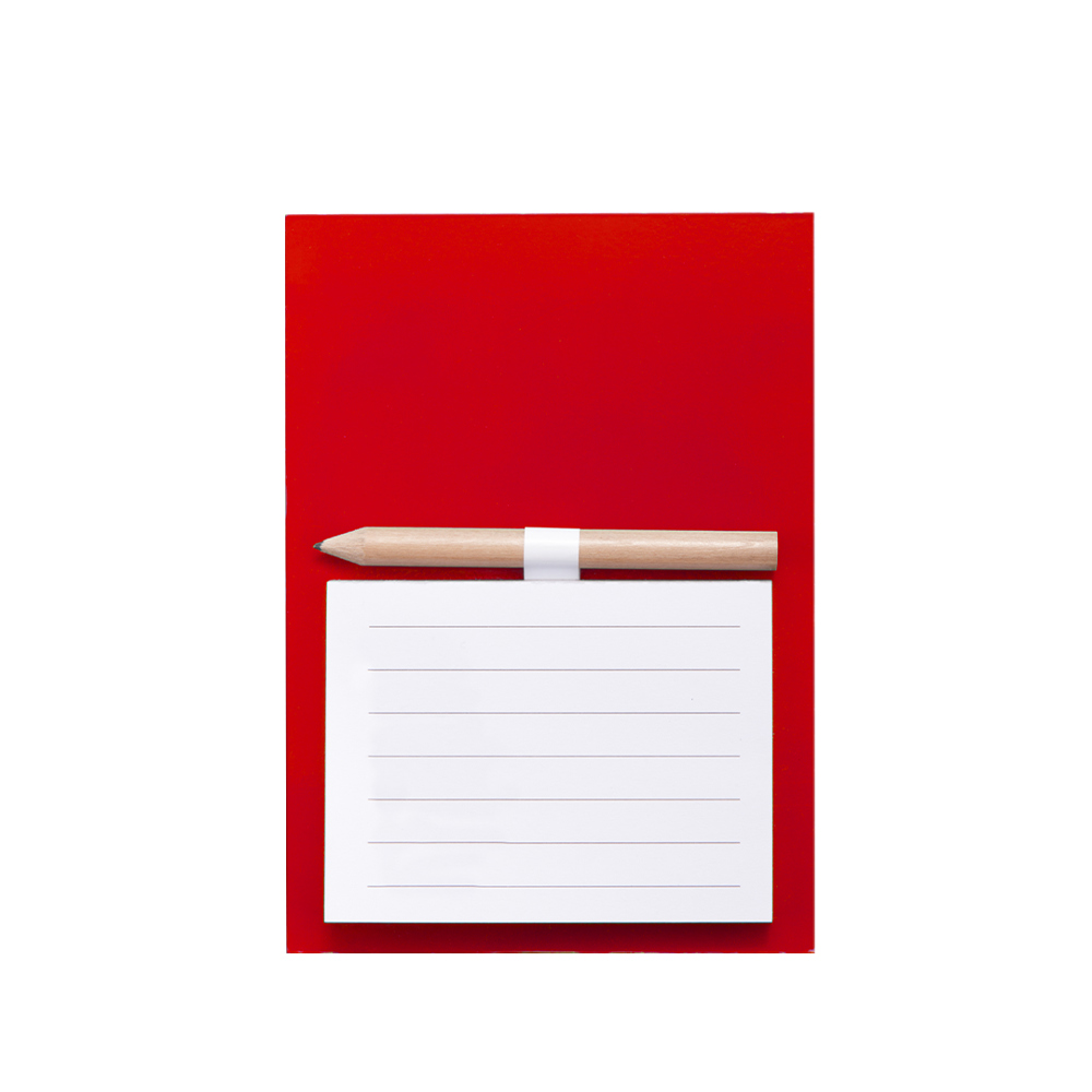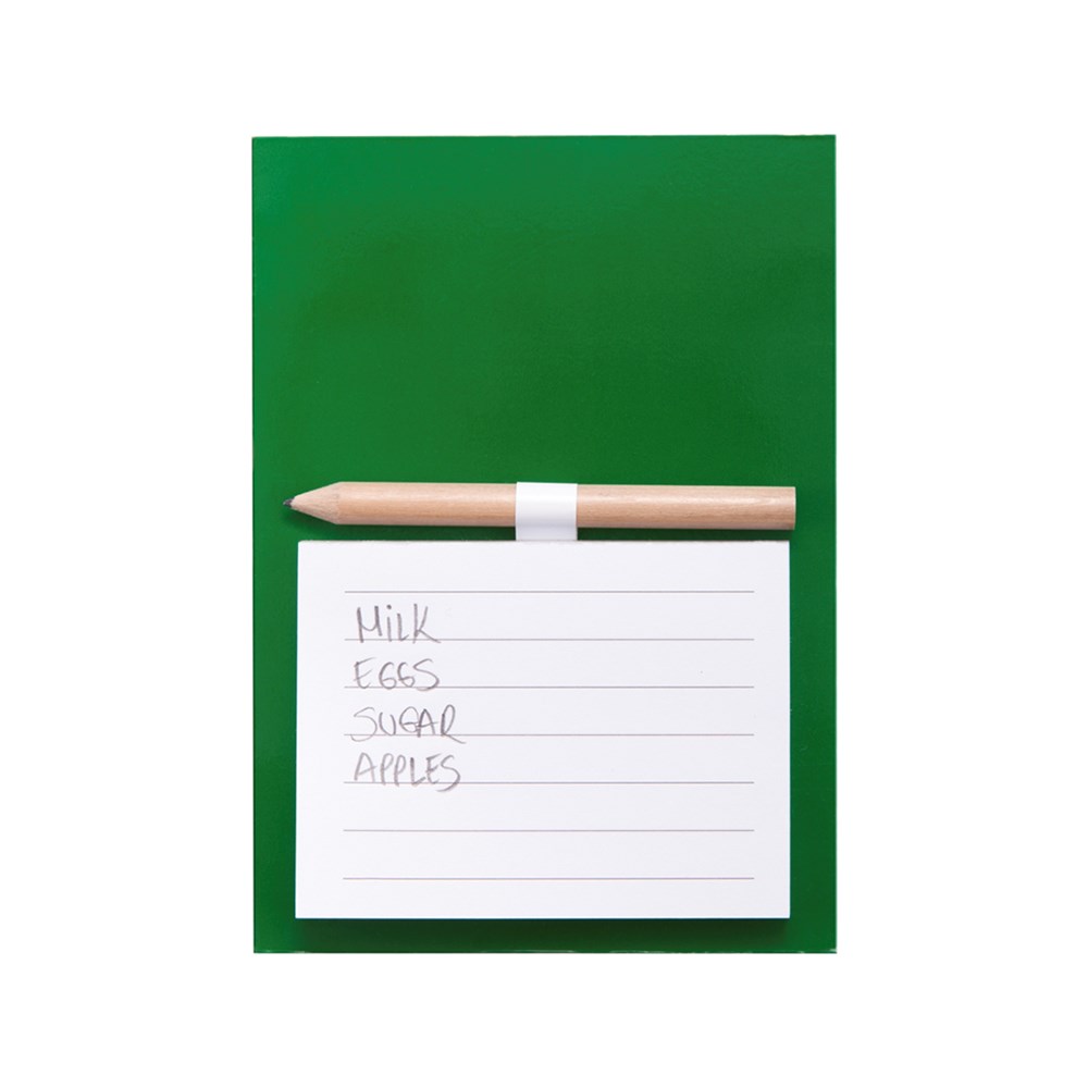 Magnet-Notizblock aus robustem Polypropylen (PP) in verschiedenen lebendigen Farben. Mit 40 linierten Blättern sowie Stifthalter für Mini-Bleistift (inklusive).