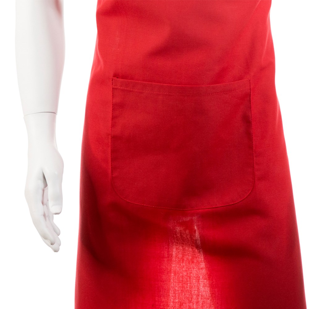 Schürze aus einer Kombination von Baumwolle und Polyester namens TC. Auf der Vorderseite befindet sich eine praktische Tasche, verstellbare Riemen an der Taille und ein Schnitt unterhalb des Knies. Erhältlich in einer breiten Palette von Farben.