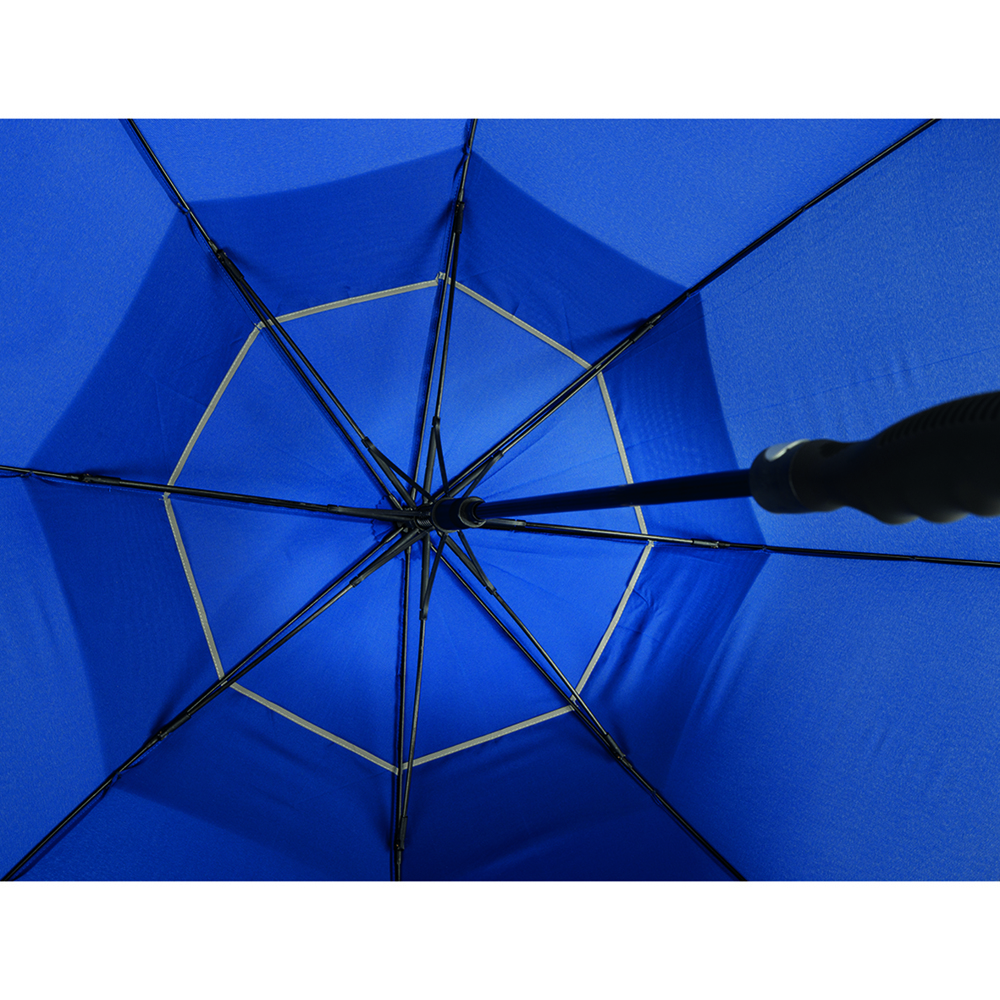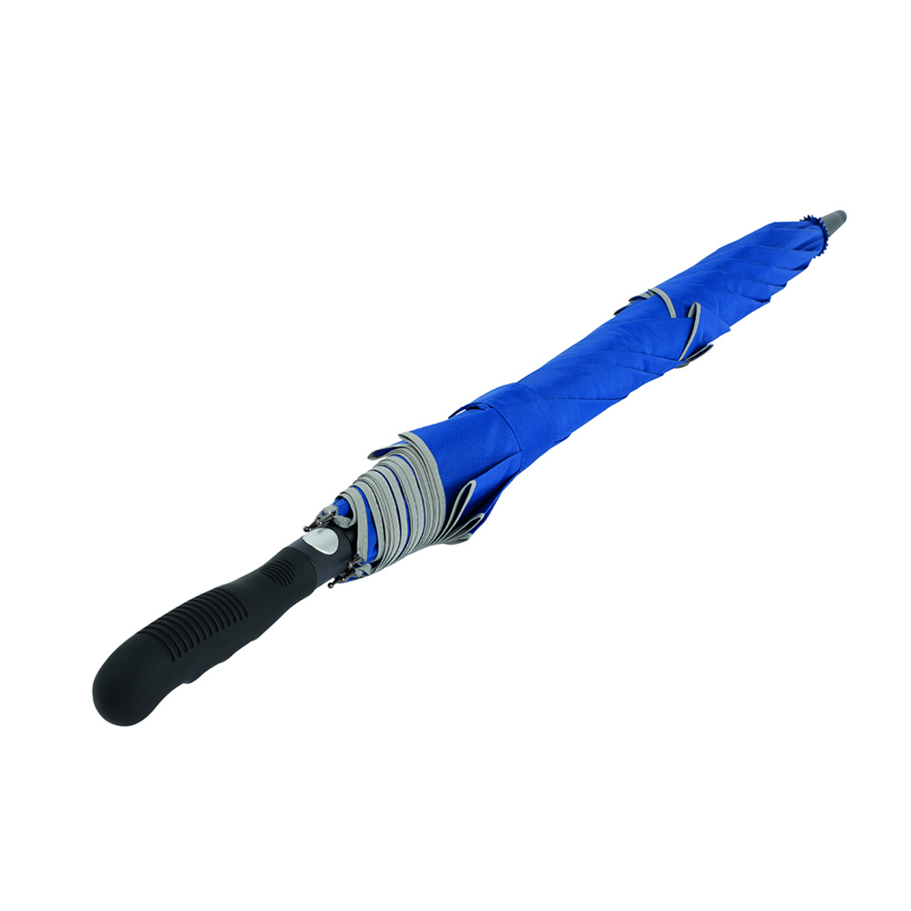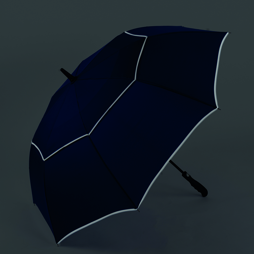 Der Schirm bietet eine Bespannung aus 190T Pongee mit zwei reflektierenden Bordüren für verbesserte Sichtbarkeit. Mit einem Durchmesser von ca. 113 cm bietet er optimalen Schutz vor Wind und Regen. Im geschlossenen Zustand misst der Schirm ca. 87 cm in der Länge. Die Automatikfunktion ermöglicht ein schnelles Öffnen. Der Schirm hat 8 Segmente und ist mit einer Windproof-Funktion ausgestattet, die ihn auch bei starkem Wind stabil hält. Der gummierte Profilgriff in schwarz sorgt für einen sicheren und komfortablen Halt.