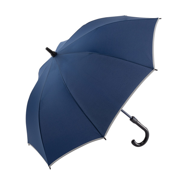 Der Schirm bietet eine Bespannung aus 190T Pongee mit reflektierender Bordüre für bessere Sichtbarkeit. Mit einem Durchmesser von ca. 104 cm schützt er zuverlässig vor Wind und Regen. Im geschlossenen Zustand misst der Schirm ca. 83 cm in der Länge. Die Automatikfunktion ermöglicht ein schnelles Öffnen. Er ist außerdem mit einer Windproof-Funktion ausgestattet, die ihn auch bei starkem Wind stabil hält. Der Kunststoffrundgriff in schwarz glänzend sorgt für einen komfortablen Halt.