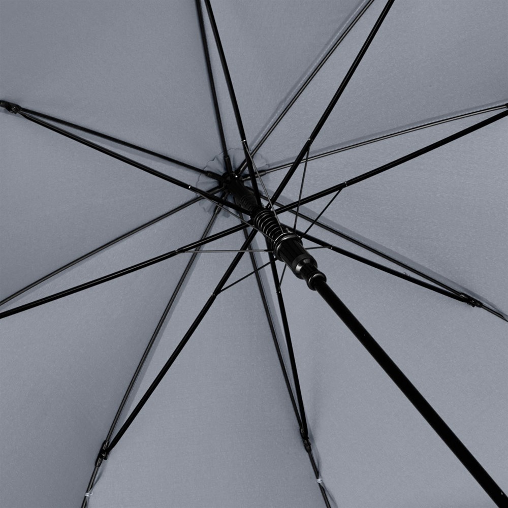 Preislich attraktiver nachhaltiger Stockschirm mit Bezug aus recycelten Kunststoffen und Echtholzelementen Komfortable Automatik-Funktion zum schnellen Öffnen, Windproof-System für höhere Gestell-Flexibilität und bessere Windsicherheit, flexible Fiberglasschienen, Polyester-Pongee Bezugsmaterial aus recycelten Kunststoffen, farbabhängig auch mit waterSAVE®-Bezugmaterial und mit waterSAVE®-Label auf dem Schließband erhältlich, Echtholz-Spitzen, gerader Echtholzgriff mit Werbeanbringungsmöglichkeit, höherer Korrosionsschutz durch schwarze Galvanisierung des Stahlstocks