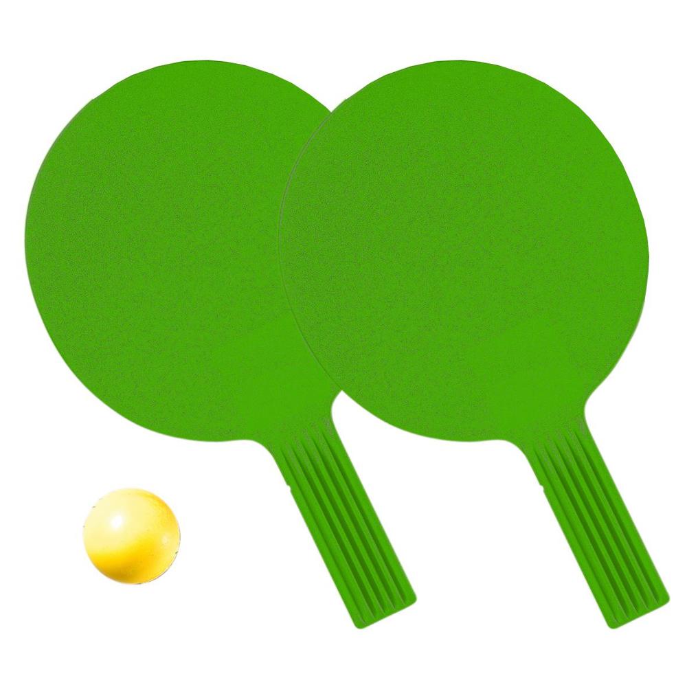 Eine leicht angeraute Schlägeroberfläche gibt dem Spielball den richtigen Drive. Das Set besteht aus 2 Schlägern mit Griffrillen und einem Softball.