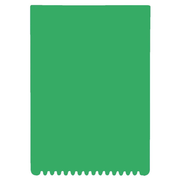 Flacher, rechteckiger Eiskratzer mit großer Werbefläche, Kratzzähnen und glatter Kratzkante. IMould-Veredelung möglich.