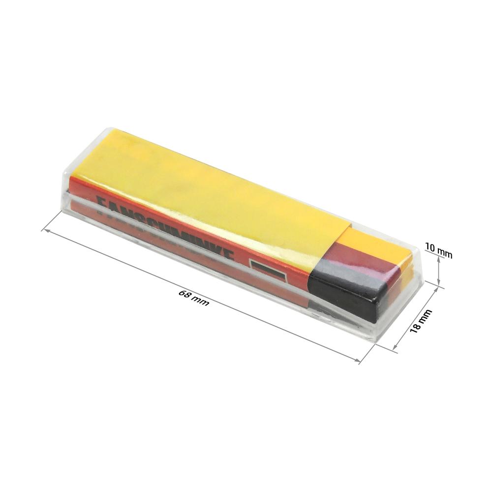 So gelingt die perfekte Deutschlandfahne im Nu! Praktische Fanschminke für eine einfache Anwendung: Ansetzen, Aufzeichnen – Fertig! Hautverträglich und rückstandslos abwaschbar.