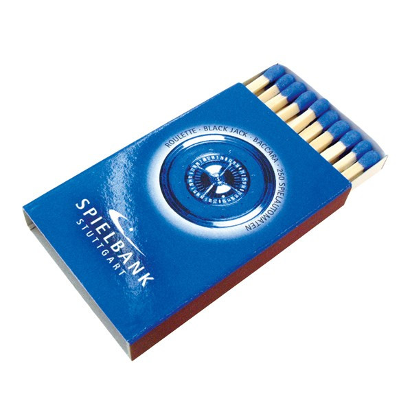 Streichholzschachtel Inhalt: ca. 17 Streichhölzer Maße: 56 x 36 x 8 mm³ Holzfarben: natur, schwarz, rot (auf Anfrage) Kopffarben: rot, orange, gelb, weiß, schwarz, grau, hellgrün, dunkelgrün, hellblau, blau, dunkelblau, pink, bordeaux, hellbraun, dunkelbraun, violett (auf Anfrage) Preise inkl. 1 Druckfarbe aus der Euroskala/CMYK (ohne Sonderfarben). Jede weitere Druckfarbe gegen Aufpreis. Schwarze/farbige Hölzer gegen Aufpreis. Freie Wahl der Kopffarbe ohne Aufpreis.