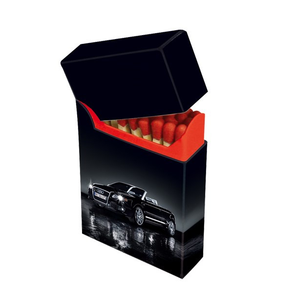 Streichholzschachtel Inhalt: ca. 29 Streichhölzer Maße: 58 x 36 x 11 mm³ Holzfarben: natur, schwarz, rot (auf Anfrage) Kopffarben: rot, orange, gelb, weiß, schwarz, grau, hellgrün, dunkelgrün, hellblau, blau, dunkelblau, pink, bordeaux, hellbraun, dunkelbraun, violett (auf Anfrage) Preise inkl. 1 Druckfarbe aus der Euroskala/CMYK (ohne Sonderfarben). Jede weitere Druckfarbe gegen Aufpreis. Schwarze/farbige Hölzer gegen Aufpreis. Freie Wahl der Kopffarbe ohne Aufpreis.