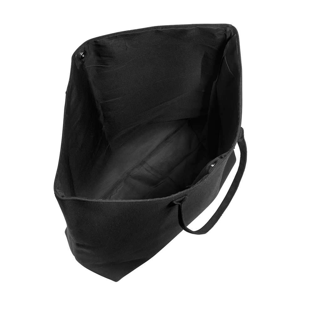 Der Shopper besteht aus 80% recycelter Baumwolle und 20% rPET. Er verfügt über ein Hauptfach, das mit einem Magnetknopf verschlossen wird, sowie ein offenes Innenfach. Die Tragegriffe haben eine Länge von ca. 78 cm und eine Breite von 1,8 cm. Mit einem Volumen von ca. 60 l bietet der Shopper viel Stauraum und ist gleichzeitig umweltfreundlich und praktisch – ideal für den täglichen Gebrauch.