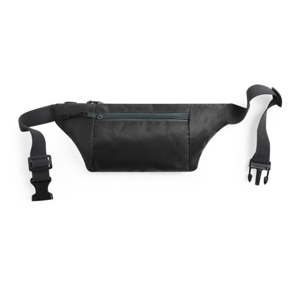 Gürteltasche aus widerstandsfähigem Ripstop-Material in Wabenform. Zwei Reißverschlusstaschen mit Stoffzug für eine bequeme Öffnung. Einen aus Nylon verstellbaren Gurt mit Schnallenverschluss. Entwickelt für Sport- und Freizeitaktivitäten.