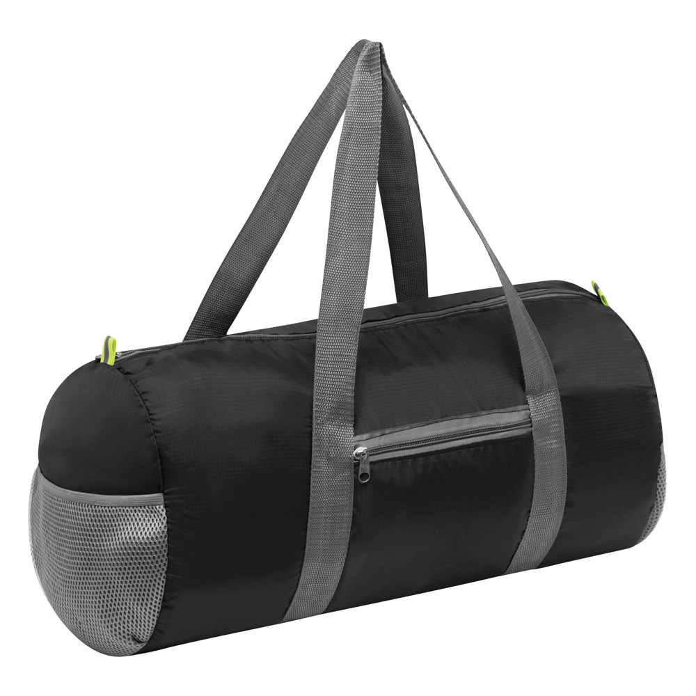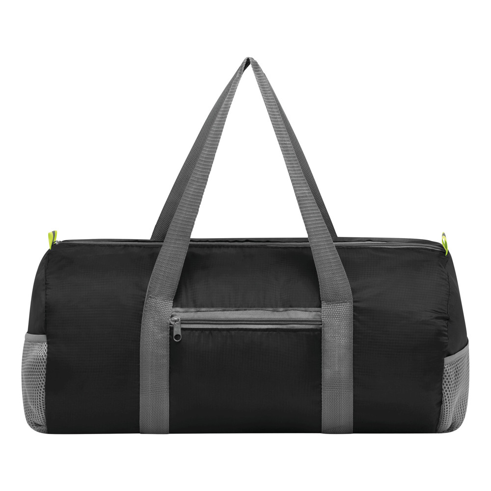 Sporttasche VOLUNTEER GYM, faltbar: Reißverschluss-Vorfach, Reißverschluss-Hauptfach mit 2 Reflektor-Etiketten, 2 seitliche Netzfächer, 2 lange Tragegriffe – lässt sich platzsparend zu einer Mini-Tasche zusammenfalten und passt perfekt in die Handtasche