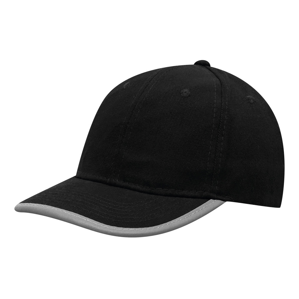 6-Panel-Baseball-Cap DETECTION: mit reflektierendem Band an Schirm und hinten auf dem Klettverschluss, verstärkte Frontsegmente, 6 gestickte Luftlöcher, Knopf, 100% Baumwolle (heavy-brushed)