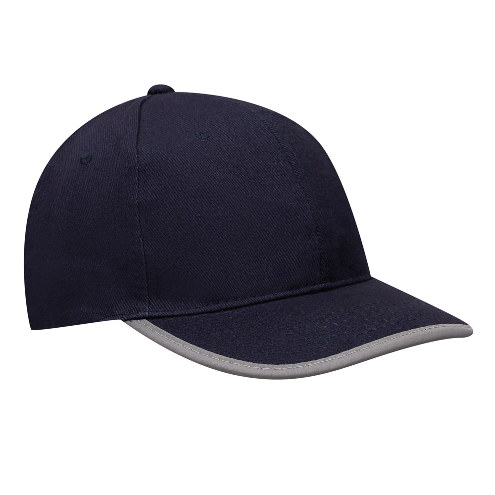 6-Panel-Baseball-Cap DETECTION: mit reflektierendem Band an Schirm und hinten auf dem Klettverschluss, verstärkte Frontsegmente, 6 gestickte Luftlöcher, Knopf, 100% Baumwolle (heavy-brushed)