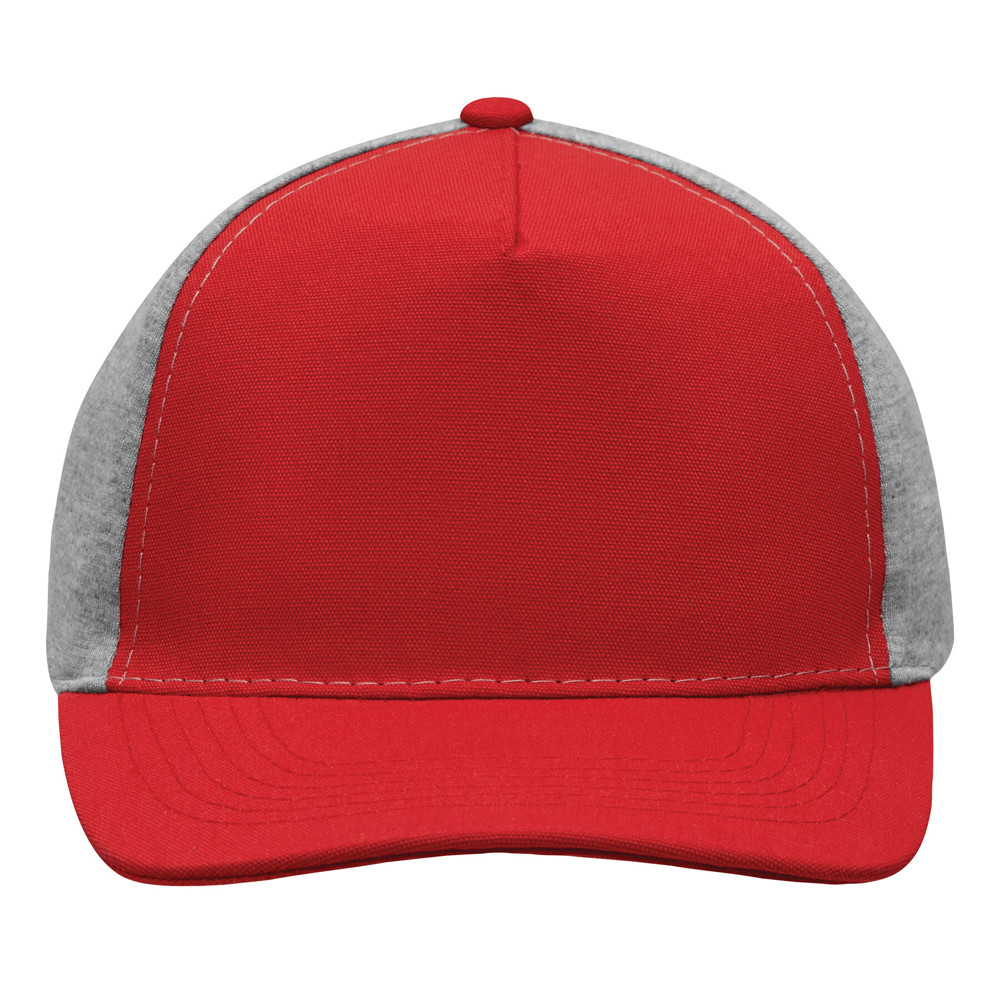 5-Panel-Baseball-Cap UP TO DATE, 2-farbig: verstärktes Frontsegment in Canvas-Optik, übrige Segmente aus Jersey, 4 gestickte Luftlöcher, Knopf, farbig abgesetzter und größenverstellbarer Klettverschluss am Hinterkopf