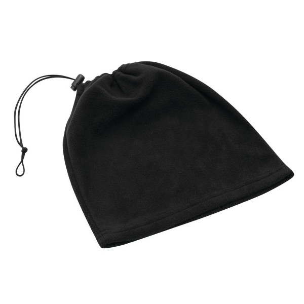 Fleece-Schalmütze VARIOUS: in 2 Tragevarianten – Schal lässt sich mittels elastischem Zuziehband und Kunststoffstopper zur Mütze umfunktionieren