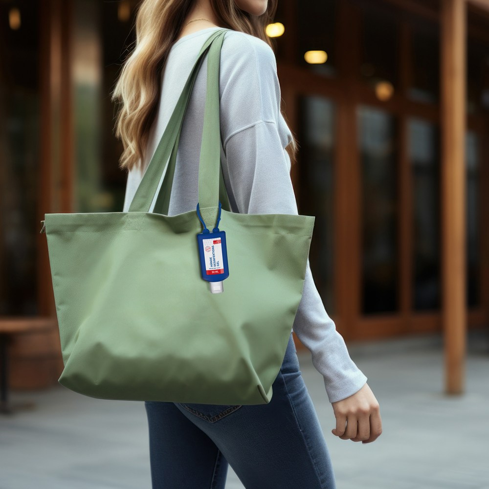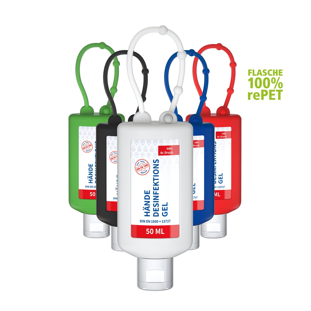 Hände-Desinfektionsgel (DIN EN 1500), 50 ml Bumper blau, Body Label (R-PET)